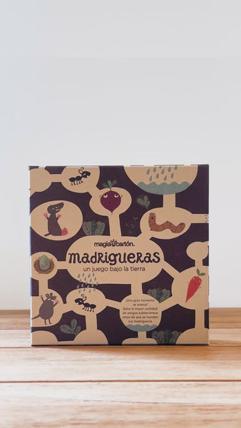 En Madrigueras, cada jugador debe salvar la mayor cantidad de habitantes que viven bajo tierra antes de que sus madrigueras se inunden. Es un juego lleno de suspenso, memoria y rapidez que encantará a grandes y chicos.