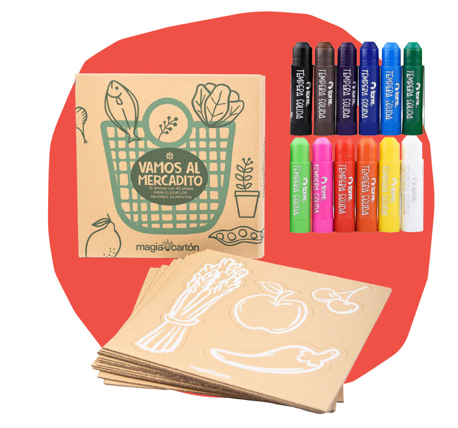 Pack Set Vamos al Mercadito + témperas sólidas 12 colores
